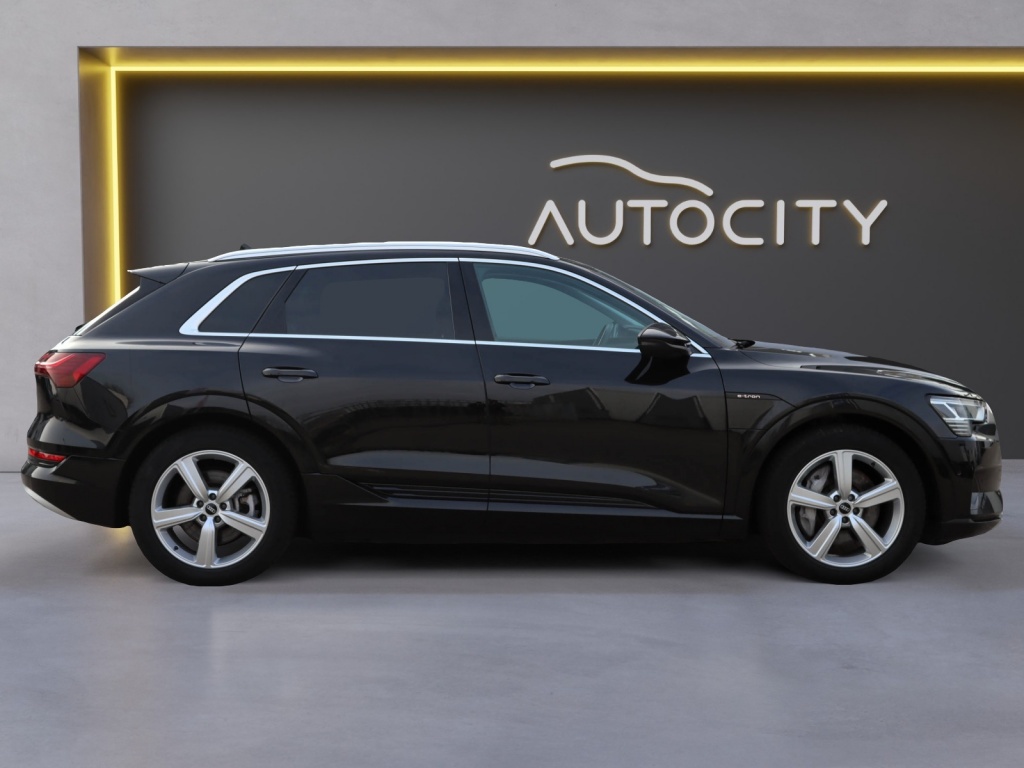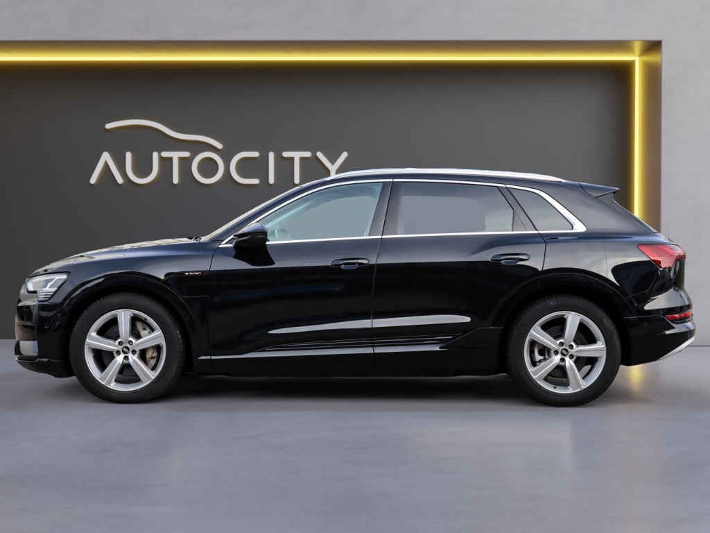 Met een krachtige elektrische aandrijving die goed is voor 313 PK, levert de Audi e-tron topprestaties en een indrukwekkend vermogen. De zwarte carrosserie en de lichtmetalen velgen geven deze auto een moderne uitstraling die niet onopgemerkt zal blijven op de weg.