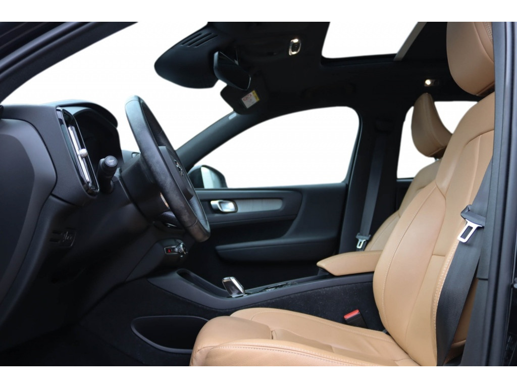 Deze XC40 is niet alleen krachtig, maar ook elegant. De zwarte metallic lak geeft de auto een tijdloze uitstraling, terwijl de chroomdetails en dynamisch ontworpen chassis zorgen voor een moderne touch. De vijf deuren bieden gemakkelijke toegang tot het ruime interieur, waar comfort en functionaliteit hand in hand gaan.