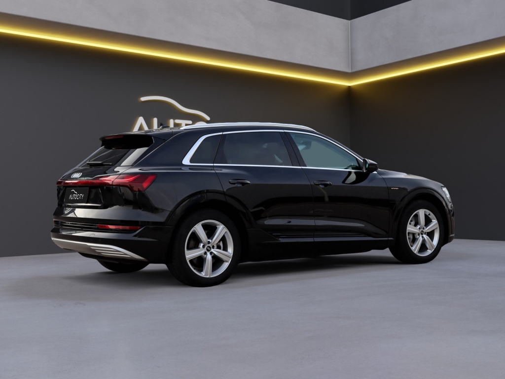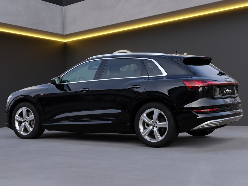 Met een krachtige elektrische aandrijving die goed is voor 313 PK, levert de Audi e-tron topprestaties en een indrukwekkend vermogen. De zwarte carrosserie en de lichtmetalen velgen geven deze auto een moderne uitstraling die niet onopgemerkt zal blijven op de weg.